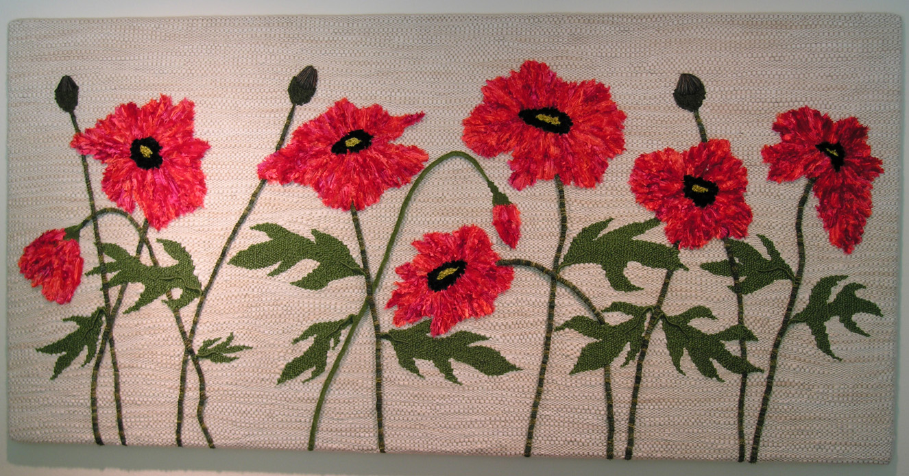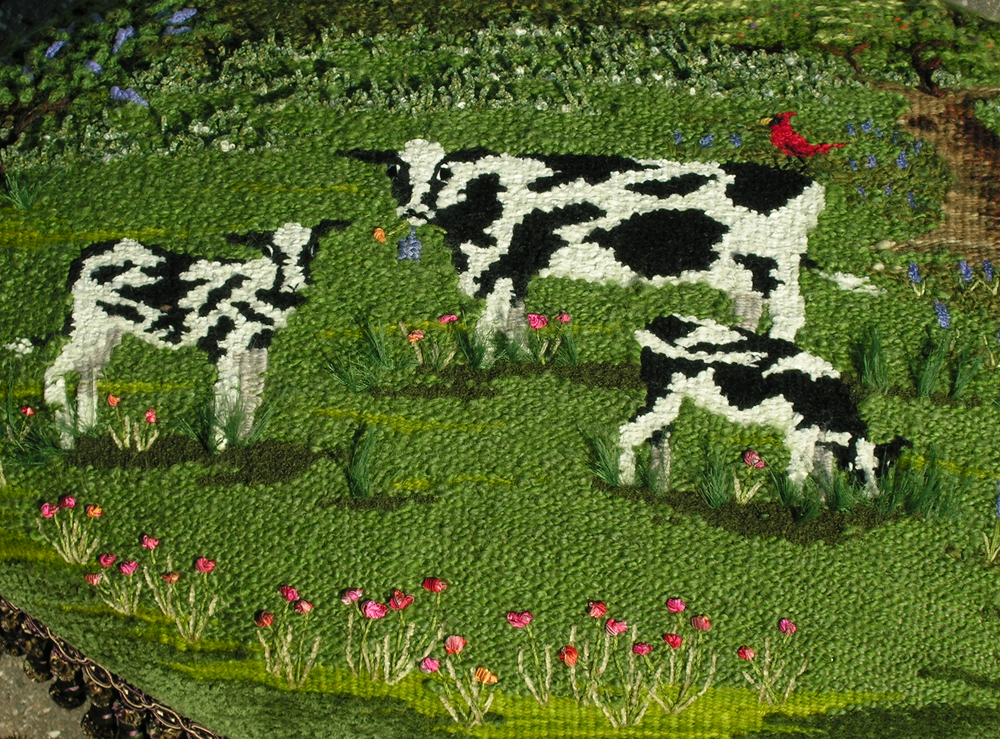 The consultations and design process, the search for just the right yarn colors and textures to express each flower and shingle, and finally weaving the tapestry, took over four months to complete. It is one of the most personally satisfying pieces I’ve ever had the opportunity to create. I am grateful for the experience.
