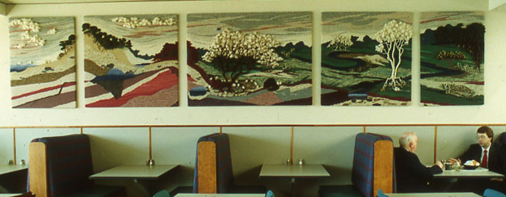 A high quality digital image of the Arnold Palmer footstool or the “Gawthrop Camp” tapestry wall hanging can be obtained by contacting Lisa McClow Berry lisa@motherloom.com. The full line of Motherloom Studio designs can be viewed at www.motherloom.com.